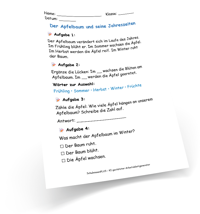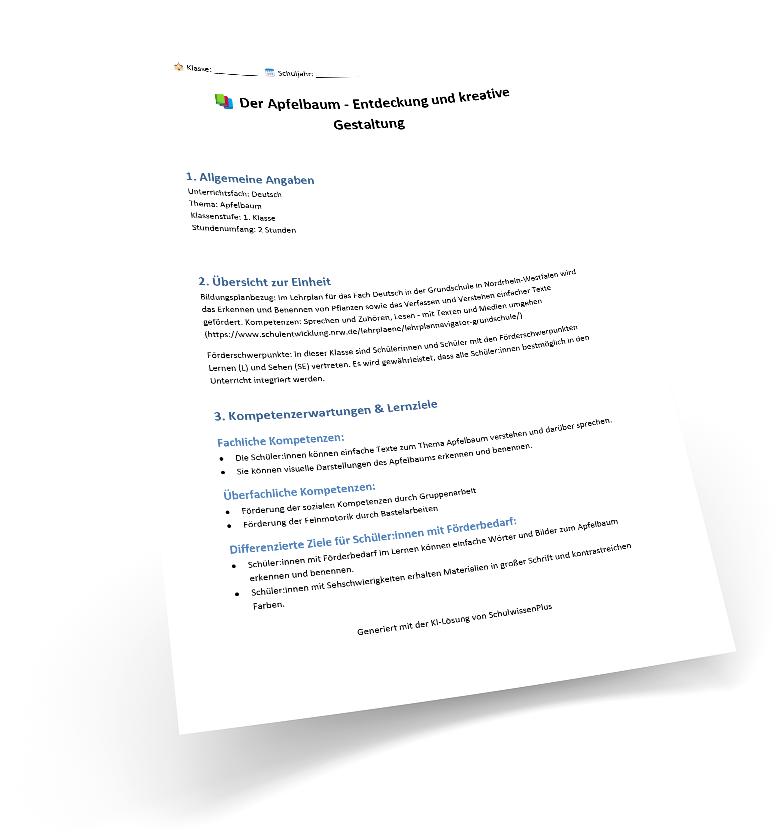 ✨ Der KI-Arbeitsblattgenerator erstellt in Minuten komplette, passgenaue Arbeitsblätter – auf Niveau, Fach und Thema abgestimmt. Für jedes Bundesland passgenau, nach Förderschwerpunkten differenzierbar, individuell für jede Grundschulklasse.